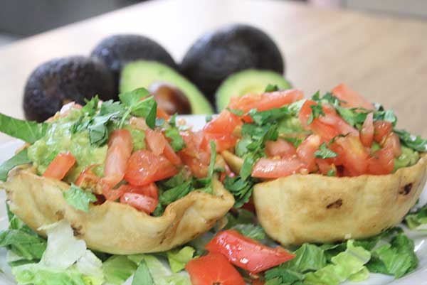 Perfect blend of fresh avocado, green chile, fresh garlic and onion. Served in a crisp tortilla bowl. Garnished with tomato and cilantro. (seasonal)